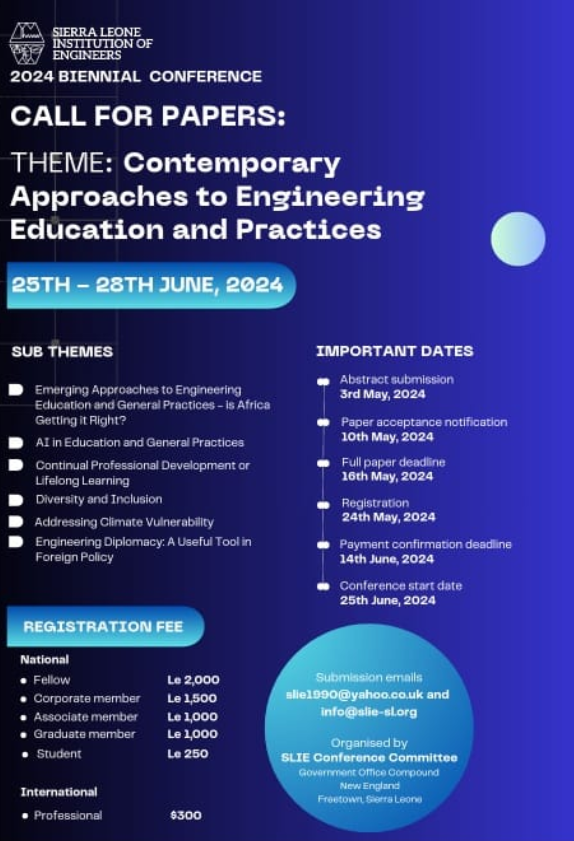 Since the revision of this Act, the regulation and registration process of professional engineers and institutions improved.However, challenges are still being experienced with respect to cooperation of stakeholders including some MDA'S of Government, Institutions, Companies/Firms, as well as individuals providing engineering services in Sierra Leone.